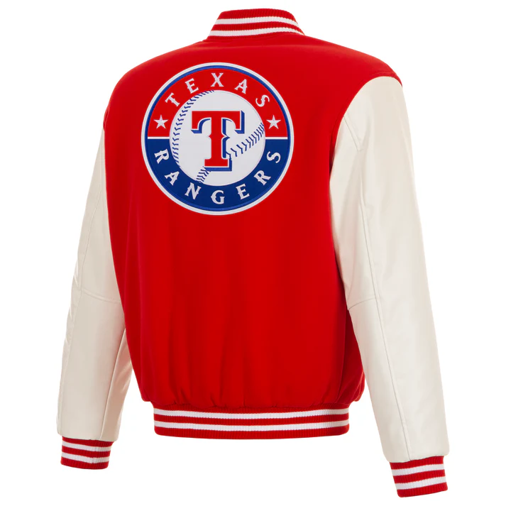 Texas Rangers Reversible Fleece Jacket with Faux Leather Sleeves - Red/White