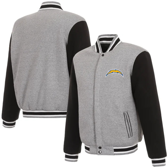 Los Angeles Chargers Two-Tone Reversible Fleece Jacket - Gray/Black