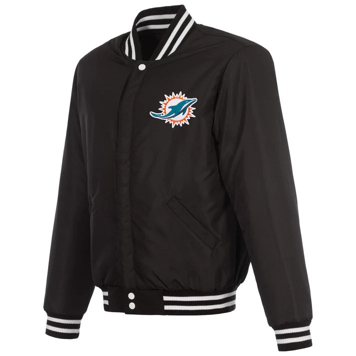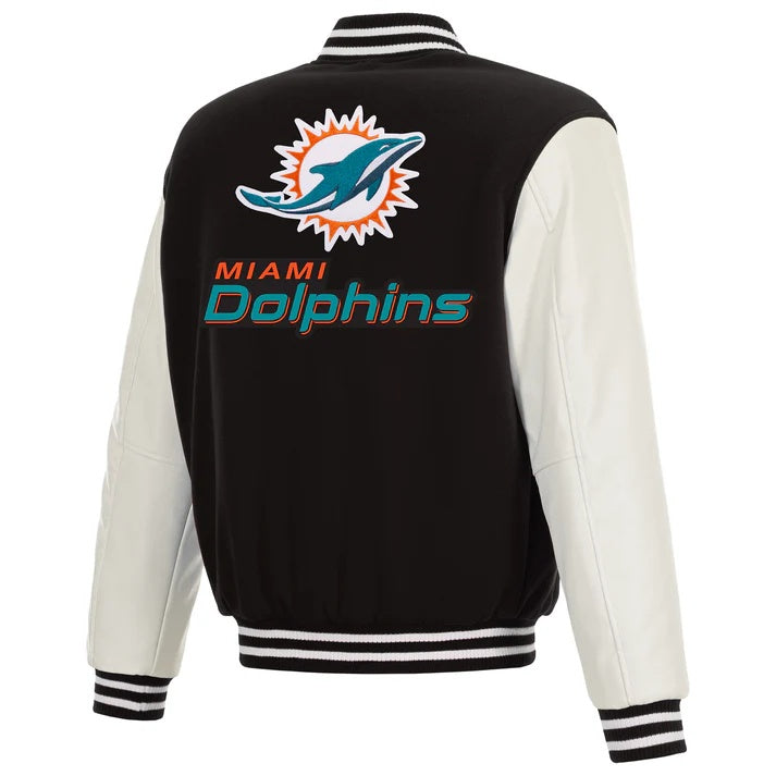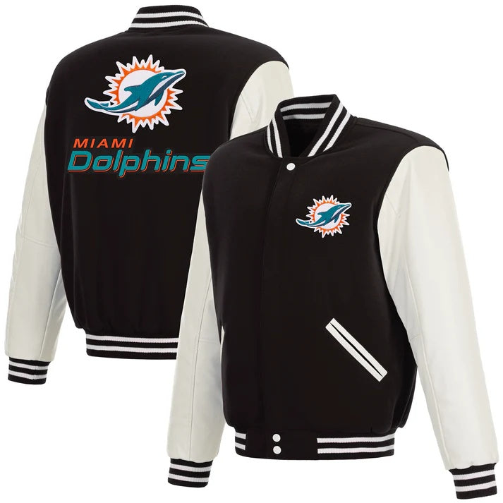 Miami Dolphins Reversible Fleece Jacket with Faux Leather Sleeves - Black/White