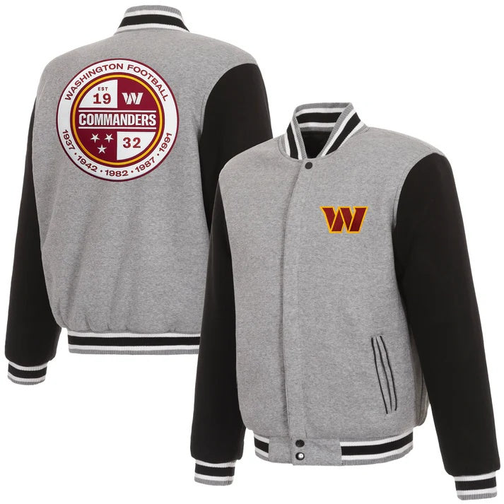 Washington Commanders Two-Tone Reversible Fleece Jacket - Gray/Black