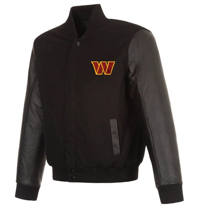 Washington Commanders Reversible Wool and Leather Jacket-Black